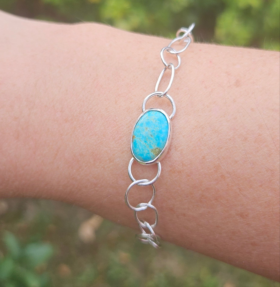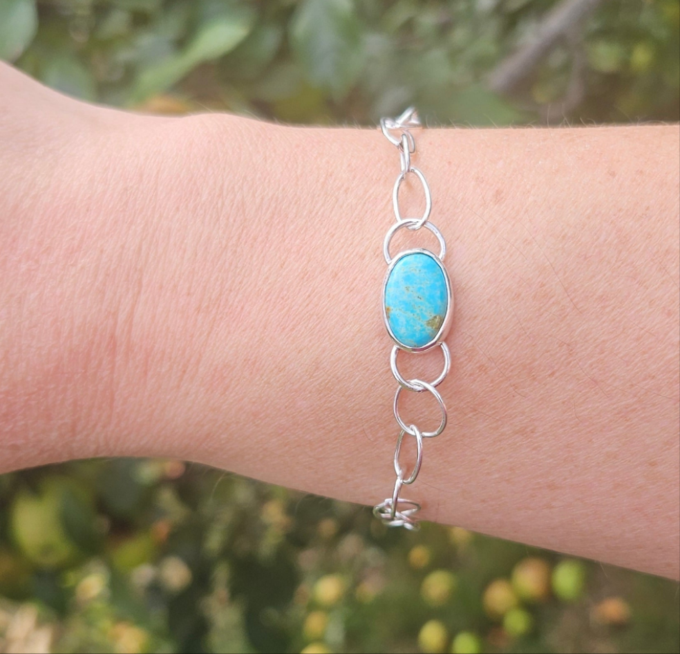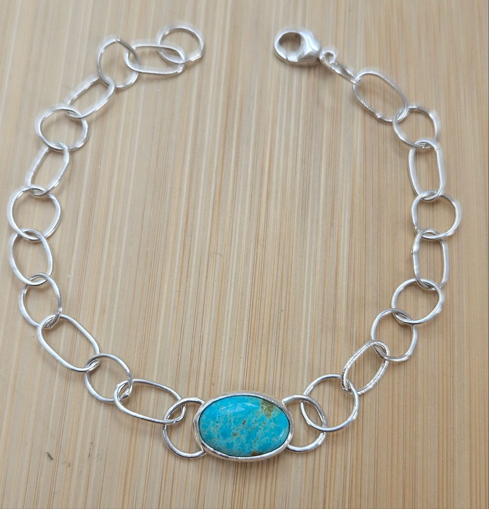 Length 20 cm, but can be tied to any link to fit your wrist.