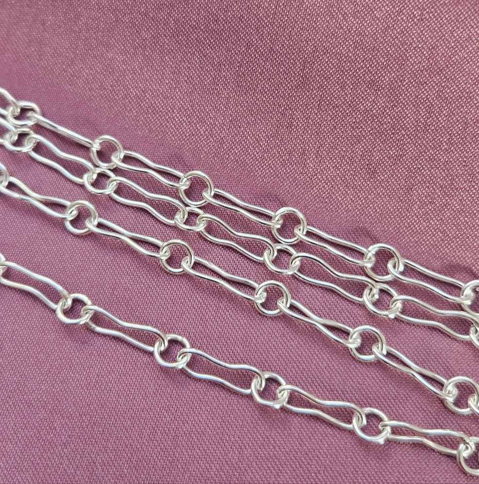 Sterling silver chain necklace consisting od round and shaped links.